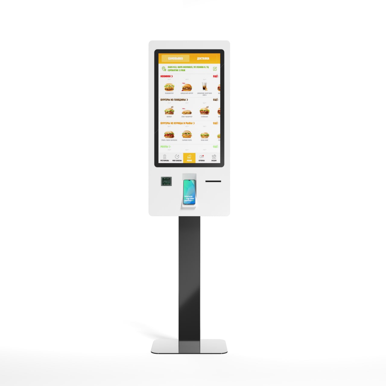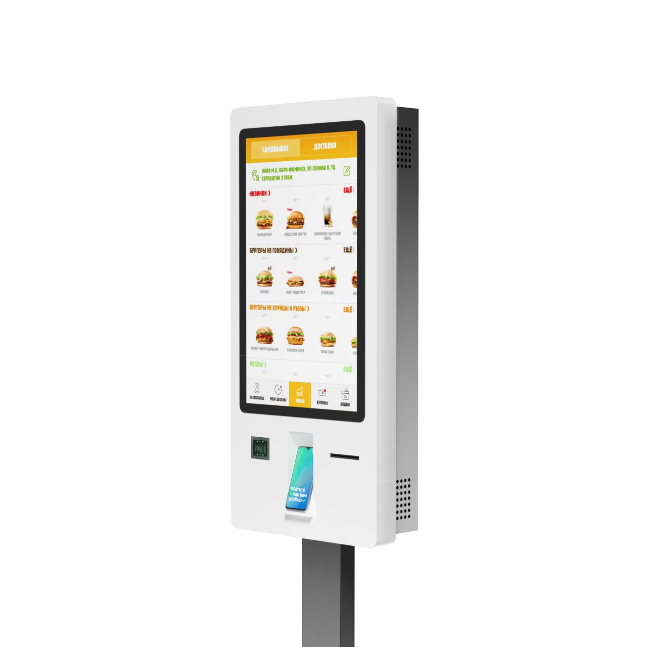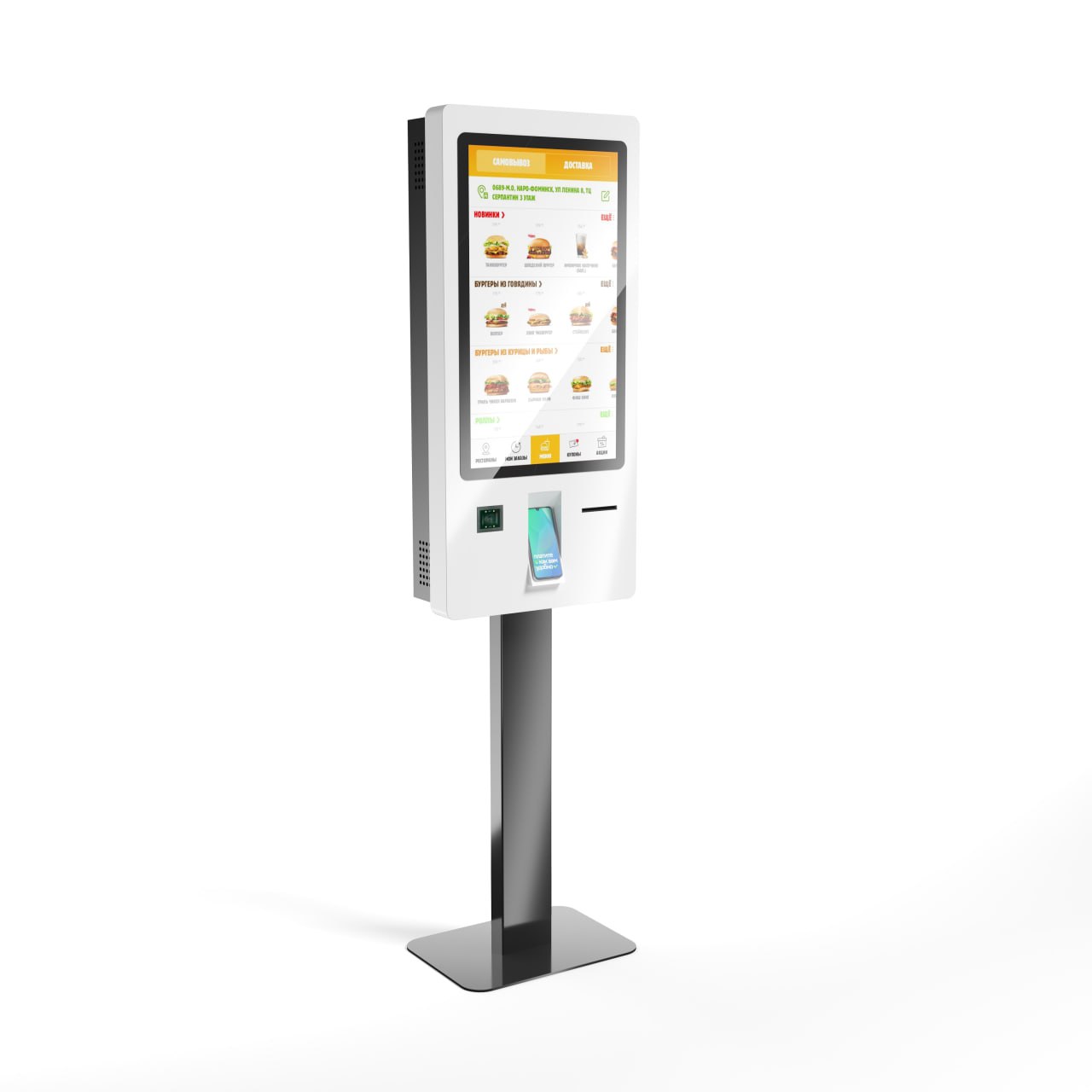 Настольный терминал самообслуживания — это сенсорное антивандальное оборудование, которое идеально подходит для обслуживания большого количества покупателей. Он оснащён программным обеспечением для касс самообслуживания. С помощью встроенного сканера BAR и QR-кодов, он позволят самостоятельно отсканировать и оплатить товаров без участия кассира. Его можно оборудовать двумя сканерами BAR и QR-кодов, встроенным в терминал и дополнительным ручным для сканирования крупных покупок, а также термопринтером для мгновенной печати чеков.